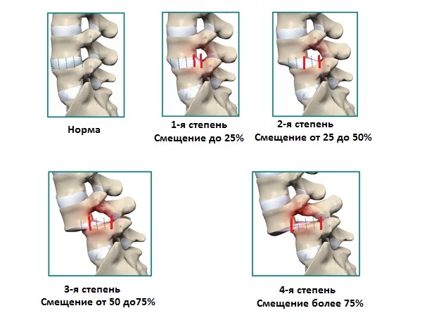 Степень смещения позвонка может быть как незначительной, так и выраженной, и определяется с помощью специальной шкалы. Лечение также варьируется: от кратковременного консервативного до хирургического вмешательства.