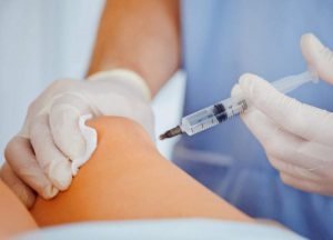 Потом врач удаляет из суставной сумки выпот, аккуратно вводит иглу, дальше производится аспирация синовиальной жидкости, и только потом вводится препарат. Делают это достаточно медленно.