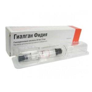 Стимулятор репаративных процессов. Гиалган Фидия представляет собой стерильный, апирогенный, вязкий буферный водный раствор фракции натриевой соли гиалуроновой кислоты высокой степени очистки с молекулярной массой от 500 до 730 кДальтон. Гиалуроновая кислота — необходимый компонент экстрацеллюлярного матрикса, присутствует в высоких концентрациях в составе суставного хряща и синовиальной жидкости. Эндогенная гиалуроновая кислота обеспечивает вязкость и эластичность синовиальной жидкости, а также она необходима для формирования протеогликанов в суставном хряще.