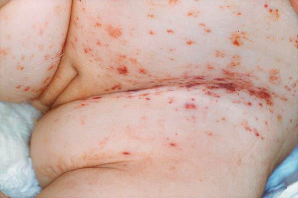 Рисунок 5. Фото проявлений эозинофильной гранулемы на коже — типичные элементы пурпуры, необходимо дифференцировать с себорейным дерматитом