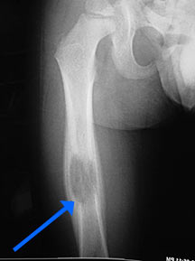 Для обнаружения новообразования необходимо сделать рентгенографию. Этот метод диагностики позволяет обнаружить локализацию атипичного процесса, выявить костные разрастания, определить размер и форму дефекта.
