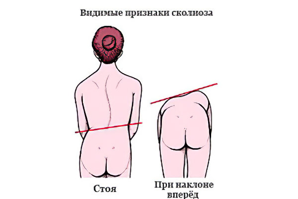 Затем необходимо нагнуться и осмотреть состояние при таком положении. В случае проявления сколиоза будут заметны такие особенности:
