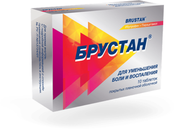 Показания к применению Брустана — лечение разных видов боли: головной и зубной, болезненных менструаций, боли в спине, мышцах и суставах 1 . Для разных ситуаций — всего одна упаковка препарата в сумочке или домашней/отпускной аптечке.