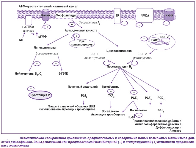 Противовоспалительные и обезболивающие свойства диклофенака сочетается с защитным действием мизопростола, который, надежно защищает от негативного воздействия диклофенака слизистую желудка.