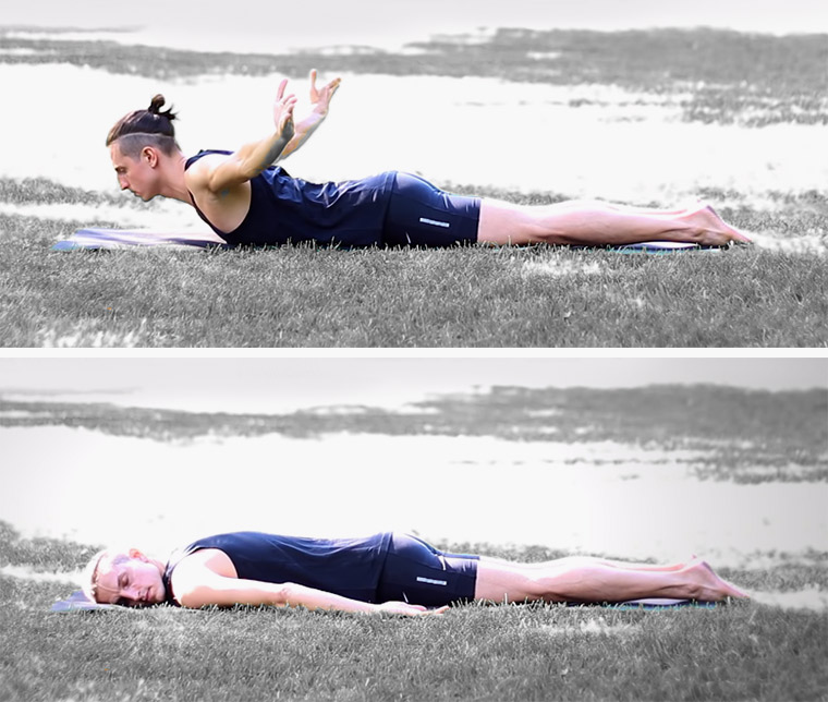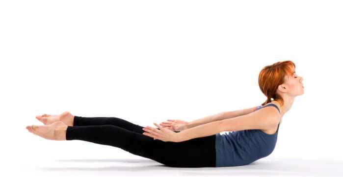 - В положении на животе, руки вытяните вдоль тела. Медленно поднимайте корпус вверх и сводите лопатки. В этом положении следует остаться на 20-30 секунд. Затем делается подъемы 10-15 раз, но с задержкой на 4 секунды.