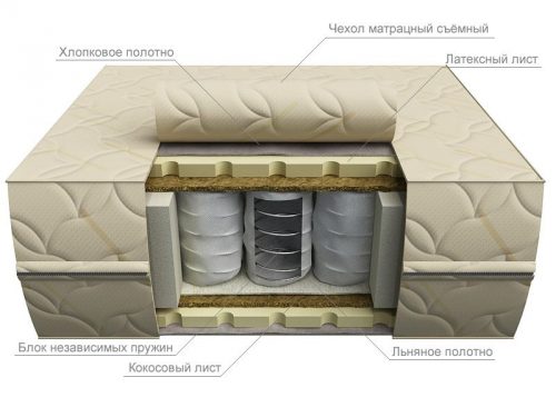 - Среднего уровня. Цена зависит от качества, наполнения «внутренностей» матраса и наличия зависимых или независимых пружинных блоков. Стоимость варьируется от 7 000 до 17 000 рублей;