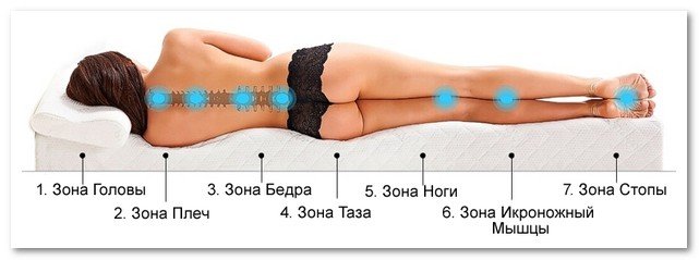 - Наличие ортопедического эффекта (свойства, обеспечивающего изделию возможность принимать форму тела человека, равномерно распределять давление на позвоночный столб).
