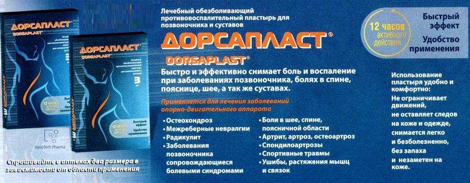 Дорсапласт — лечебный пластырь для заболеваний опорно-двигательного аппарата, изготовлен на основе современных технологий, достижений традиционной и народной медицин.