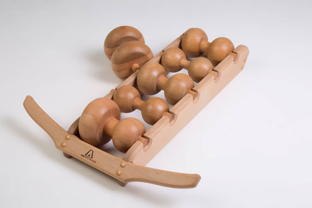 Тренажер состоит из рамы, в которую устанавливаются гладкие ролики. Чтобы заниматься на тренажере Древмасс, нужно лечь на него спиной, зафиксироваться руками за специальные ручки и сделать несколько прокатов спиной по роликам вперед-назад. Анатомическая форма тренажера, ролики разных размеров сконструированы таким образом, чтобы оказывать правильную нагрузку на больную спину. В набор входит активный ролик – элемент самого большого диаметра. Его устанавливают в зоне наибольших повреждений: шейном, грудном или поясничном отделе. В результате вы получаете направленный, активный массаж и выраженный лечебный эффект.