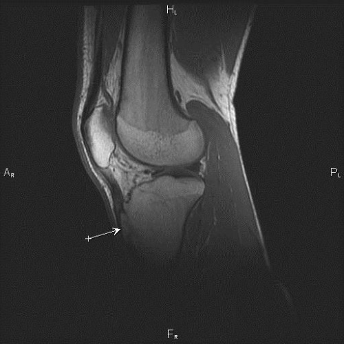 - отрыв бугристости в виде светлого образования в верхней части головки большеберцовой кости.