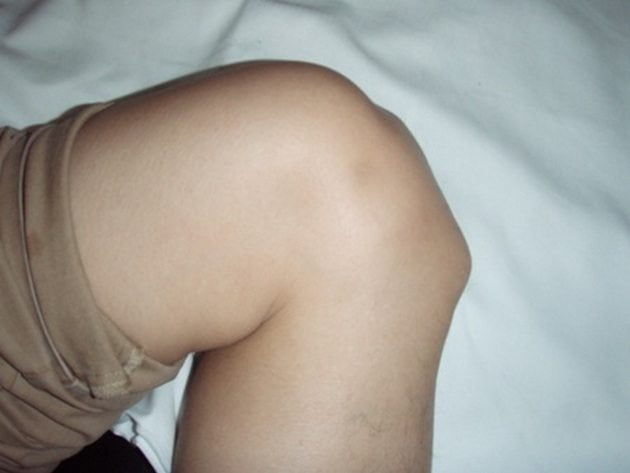 Болезнь Осгуда-Шляттера может проявляться болезненной шишкой в области ниже коленной чашечки в детском и подростковом возрасте, когда начинается период полового созревания.