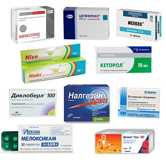 - нестероидные противовоспалительные препараты НПВС (Ибупрофен, Диклофенак, Ортофен, Вольтарен, Индометацин) — для облегчения боли, снятия воспаления;
