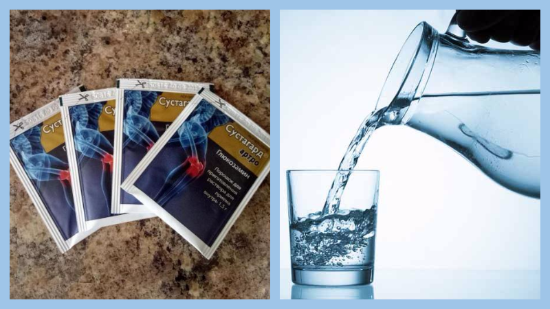 Порошок Сустагард Артро принимают внутрь, предварительно растворив содержимое 1 пакетика (1,5 г) в 200 мл воды.