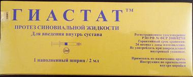 Гиастат, или другое название — протез синовиальной жидкости, — это современная разработка медикаментозного препарата. Применяется он для возвращения функций хрящевой ткани, на которую оказали отрицательное воздействие такие недуги: первичный, вторичный артроз, а также другие негативные изменения в суставах.