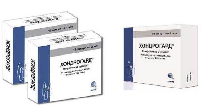 Препарат Хондрогард имеет единственную форму выпуска — раствор для внутримышечного введения с концентрацией 100 мг на 1 мл. Ампулы из бесцветного стекла по 1 мл или 2 мл. В каждой упаковке находится 5 ампул.