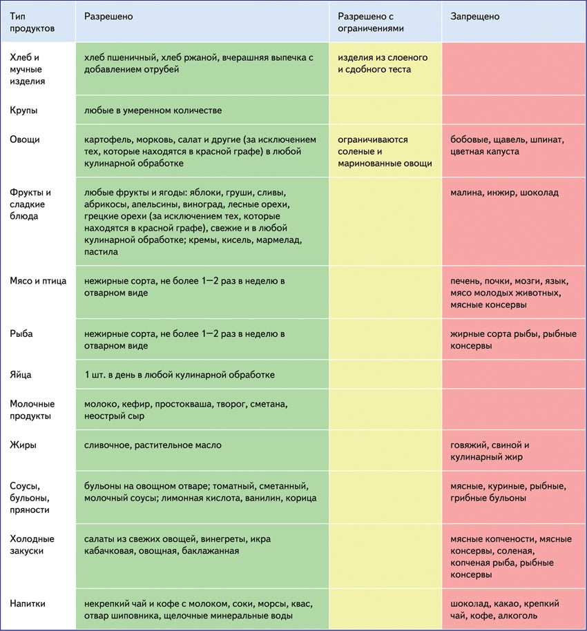 В рационе больного обязательно должны присутствовать продукты с высоким содержанием полиненасыщенных жирных кислот, легкоусвояемого белка и витамина C: