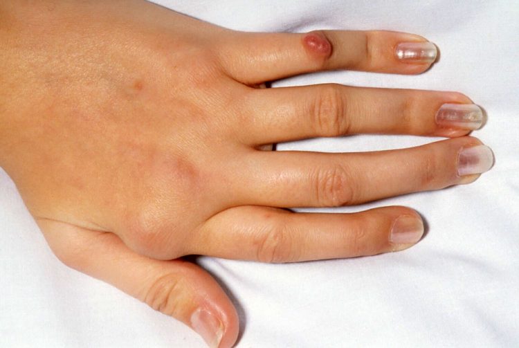 В детском возрасте чаще диагностируют инфекционный и реактивный артрит, чаще всего развивающийся на фоне стрептококковой инфекции. Клиническая картина артрита пальцев рук у детей выражена более ярко, чем у взрослых: сильные боли и выраженные деформации суставов сопровождаются выраженной лихорадкой и общей интоксикацией организма.