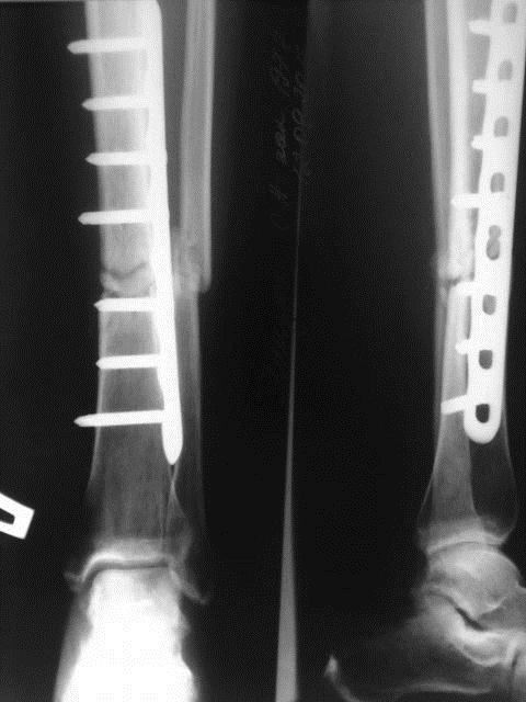 Рентгенограмма ложного сустава на большеберцовой кости