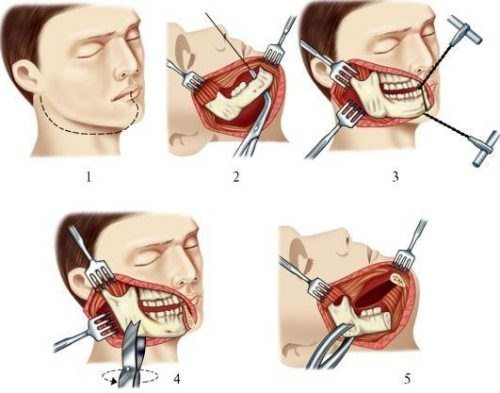 - сдвиг челюсти в сторону для полноценного открытия рта;