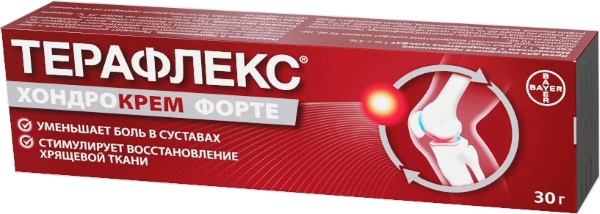 Крем Терафлекс хондрокрем форте, помимо мелоксикама, содержит сульфат натрия хондроитина (50 и 10 мг соответственно в 1 г препарата). Он выпускается в тубах массой от 10 до 100 г. Средняя цена за тюбик 30 г составляет 300 руб. Сульфат натрия хондроитина представляет собой высокомолекулярное органическое соединение, которое входит в естественный состав хрящевой ткани.