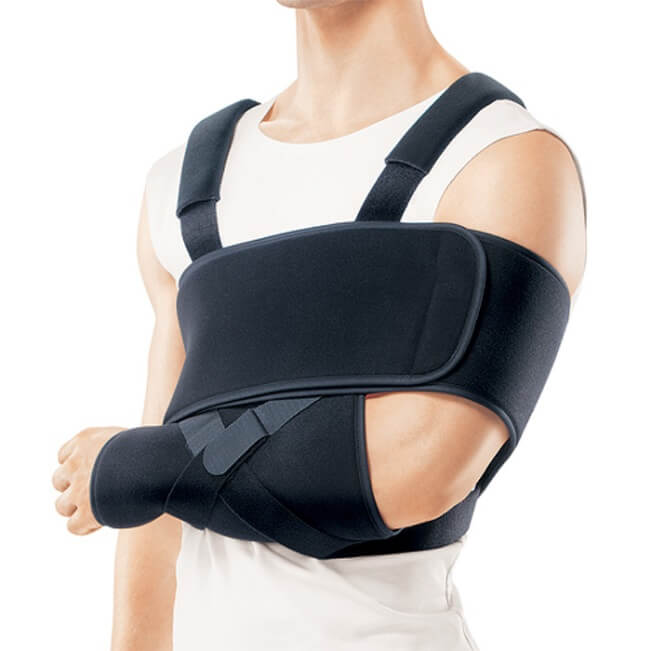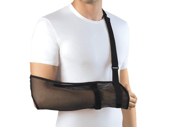 Такие фиксаторы обычно используется в сочетании с тяжелыми гипсовыми повязками. Чтобы снизить нагрузку на плечевой сустав и обеспечить удобное положение травмированной конечности, рука укладывается в специальный карман (или косынку). Важно правильно зафиксировать поддерживающий фиксатор, чтобы он не оказывал чрезмерного давления на плечевой сустав, ключицу или шею больного.