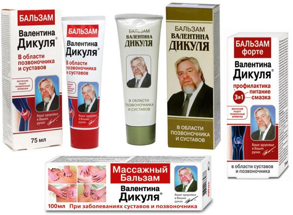 Бальзам Валентина Дикуля для позвоночника и суставов – группа косметических лечебных средств, обезболивающего и противовоспалительного действия, применяемых для профилактики обострений и лечения заболеваний позвоночника и суставов в составе комбинированной терапии.
